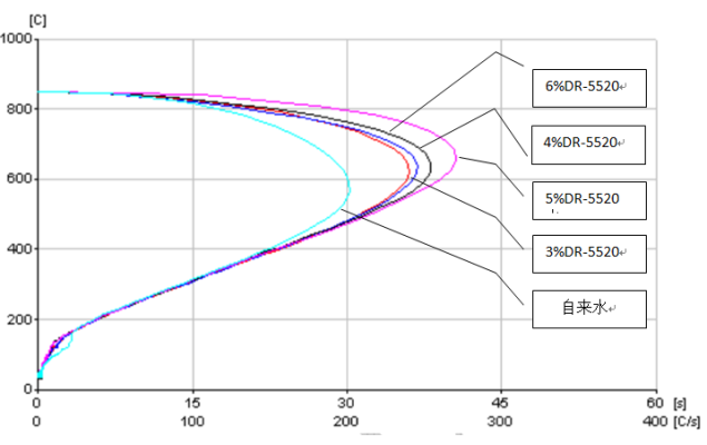 - DR-5520水溶性淬火劑蒸汽膜階段短,高溫冷速極快,可迅速躲過C曲線的鼻尖;